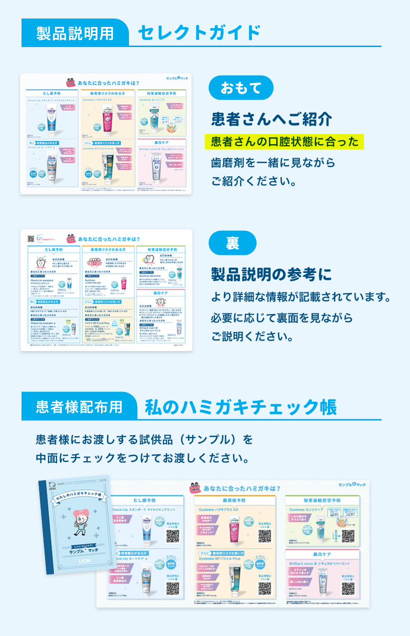 サンプルdeマッチ#4(サポートページ) INDEX 製品の特長や成分についての詳細情報はこちら。 (クリックすると新しいタブで開きます。) オプション Aセット 先着お申し込み医院様限定 オプション Bセット 先着お申し込み医院様限定 製品ガイド(PDF)をご覧いただけます。